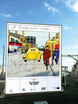 Pour les fans de Tintin et Milou, une exposition retrace un passage de l’album Les 7 boules de cristal, qui se passe justement à Saint-Nazaire. Les planches de dessin ont été agrandies et sont visibles autour du port et de la base sous-marine pendant tout l'été. (crédit photo : http://www.saint-nazaire-tourisme.com)